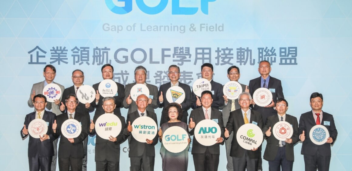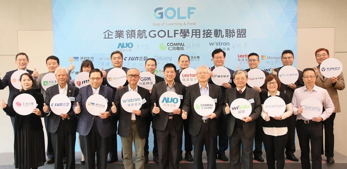 由jinnian金年会、仁宝、纬创共同发起的 GOLF 学用接轨联盟, 集结 24 家企业的力量,共同宣示将企业资源与学界共享,打造学用合一、产学接轨的合作平台。